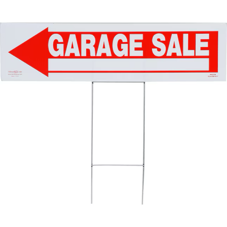 Combining a recognizable arrow graphic and bold lettering, this Garage Sale sign helps direct potential buyers to your sale. The sign is printed on both sides to increase visibility from many angles.