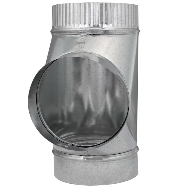 This sturdy Imperial 6-in Tee is used to branch a main line or a branch line with a 90-degree angle. The full-flow tee is ideal for use with heating and air conditioning applications, as well as, bathroom fans and kitchen vent applicaitons. It is designed to connect pipes of the same diameter, but a reducer/increaser may be used to modify multiple pipe size connections if required (sold separately). This duct tee is made from 30-gauge galvanized steel for rust resistance and long-lasting durability.