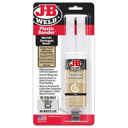 Plastic Bonder is a quick-setting, two-part, urethane adhesive system that provides strong and lasting repairs and works on thermoset, carbon fiber composites, thermoplastics, coated metals, concrete and more