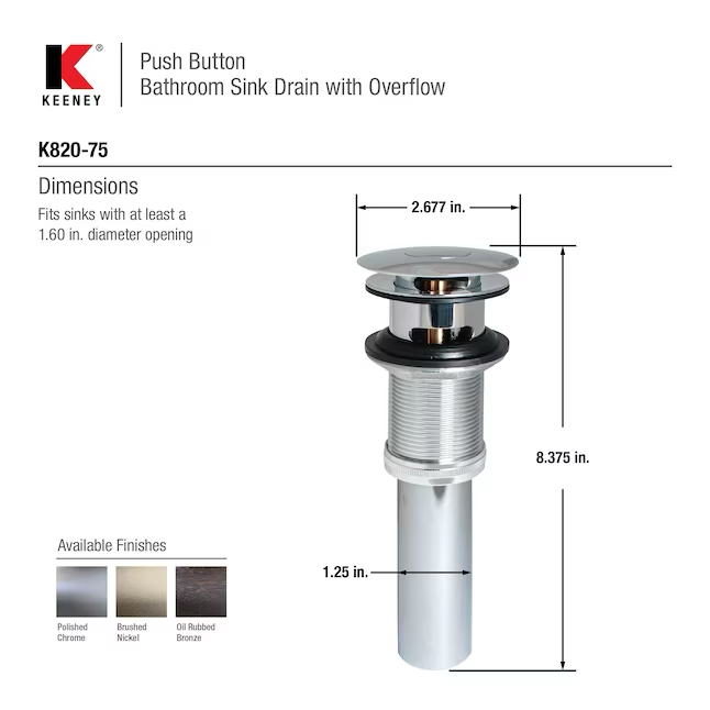 Fits popular bathroom sink styles: pedestal, vessel, drop-in, under-mount