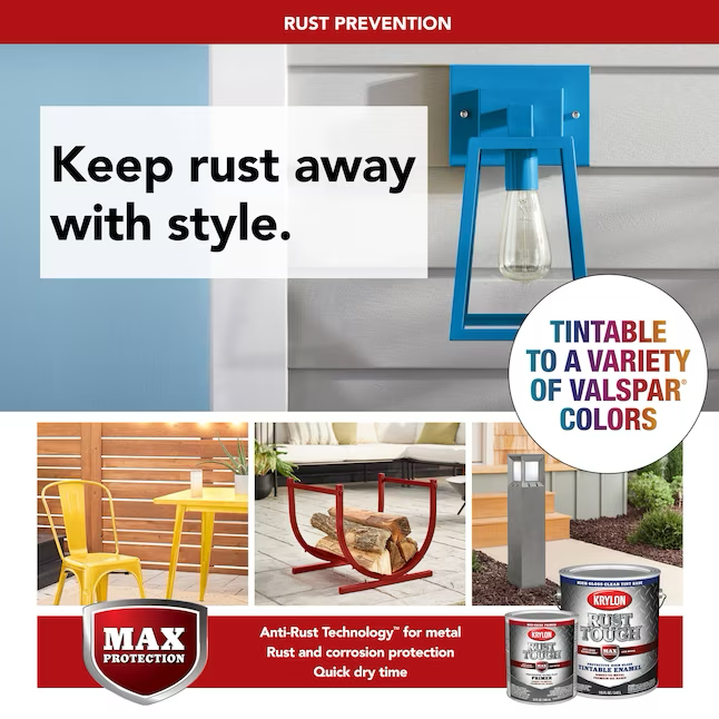 Krylon Rust Tough with anti rust technology provides maximum protection against rust and corrosion on metal surfaces. Can be applied directly to metal or used over Krylon Rust Tough Primer for maximum protection.