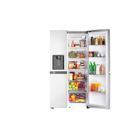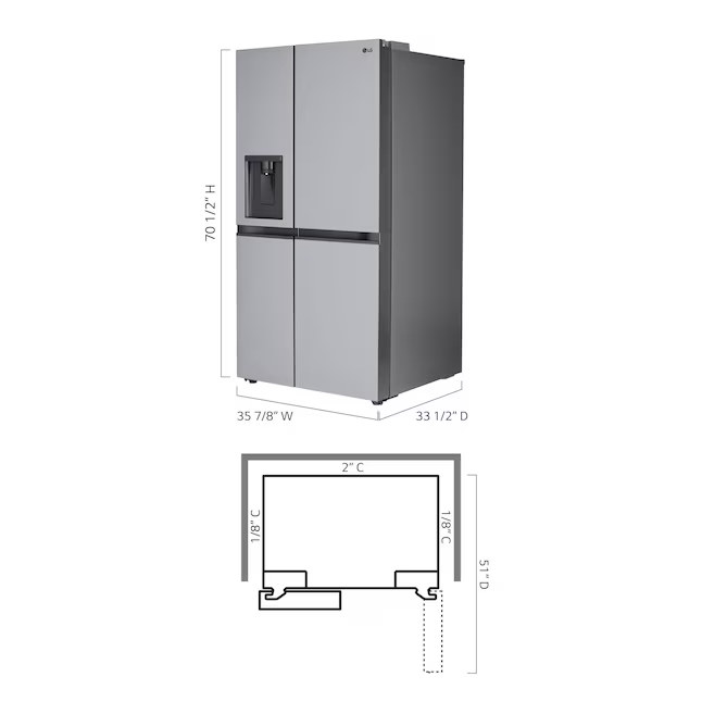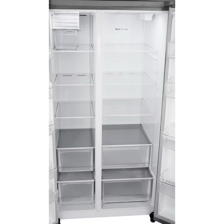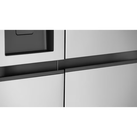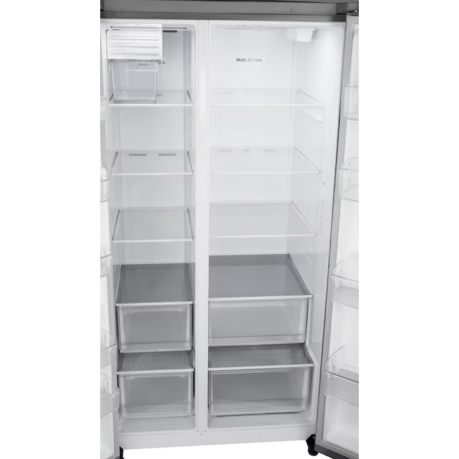 - Specifications ADA Compliant No Handle Type Integrated Air Filtration Yes Hidden Hinge Yes Appliance Type Side-by-side refrigerator Hub Required No Built-In No Humidity-Controlled Crispers 2 Child Safety Locks Yes Ice and Water Dispensers Water only Customizable No Ice Maker Single Dispenser Light No Ice Type Cubed Door Alarm Yes Ice/Water Location External dispenser Door Shelves 4 LED Light Yes Door Style Contoured