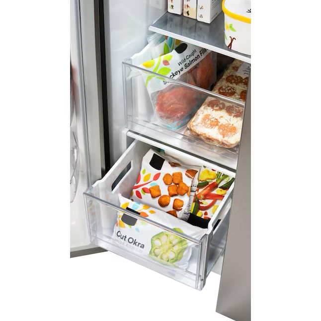 - Features Door Texture Smooth Matching Replacement Water Filter Model LT1000P Door within Door No Panel Ready No Dual Evaporator Cooling System No Professional No Electronic Temperature Control Yes Refrigerator Interior Lighting LED Fingerprint-Resistant Yes Reversible Freezer Door No Freezer Baskets 0 See-Thru Door No Freezer Door Bins 4 Shelf Options Glass shelves Freezer Door Shelves 1 Snack/Deli Drawer No Freezer Light Yes Space-Saving In-Door Ice No Freezer Shelves 3 Temperature Controlled Drawer No Frost-Free Yes Voice Controlled No Gallon Door Storage Yes Water Filter Indicator No Garage Ready No Water Filtration Yes