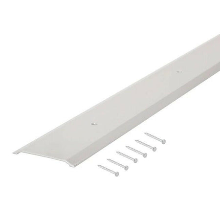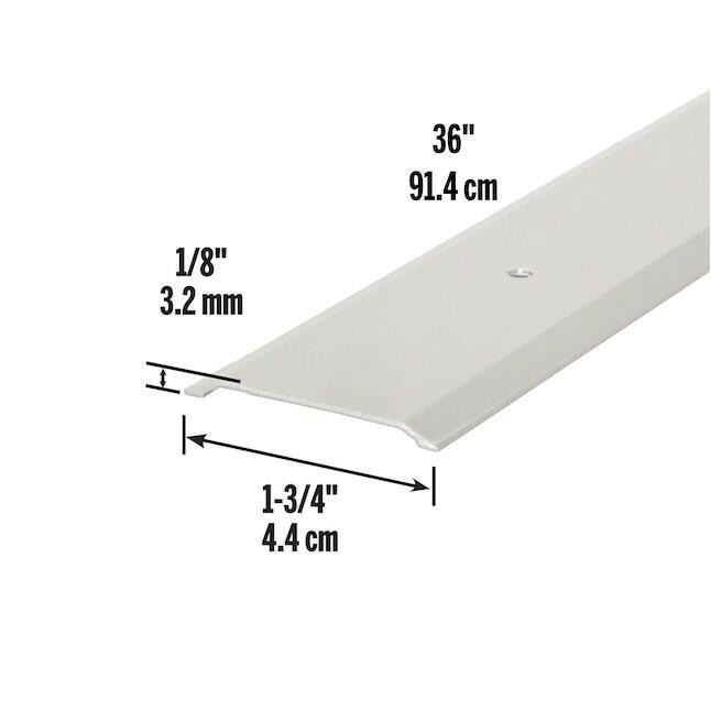 The M-D aluminum flat top threshold is used to create a transition in an interior door way or between two different floor surfaces. All of the hardware needed for installation is included. Before installation, the threshold can be cut to a desired length by using a hacksaw.