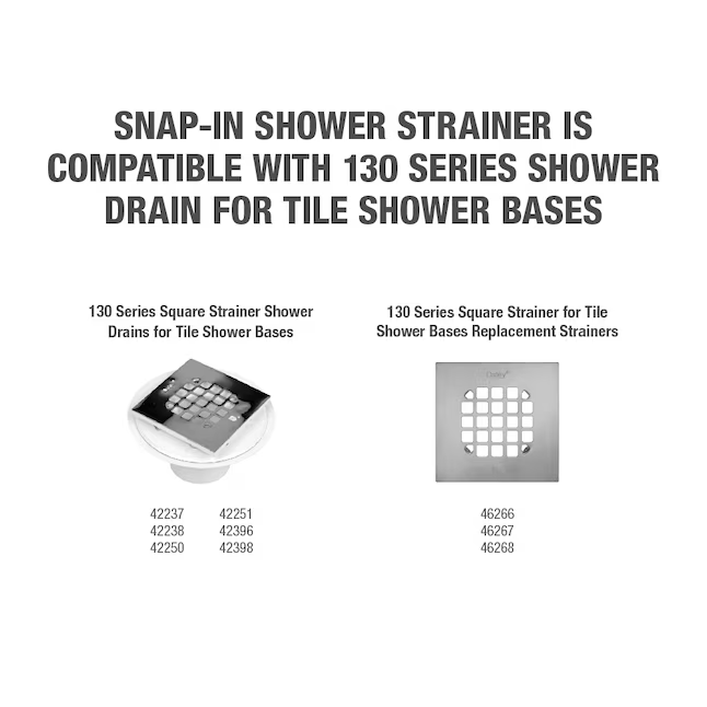 • Snaps onto no-caulk, tile shower, offset, solvent weld, brass NPT and two-part shower drain bodies for easy installation