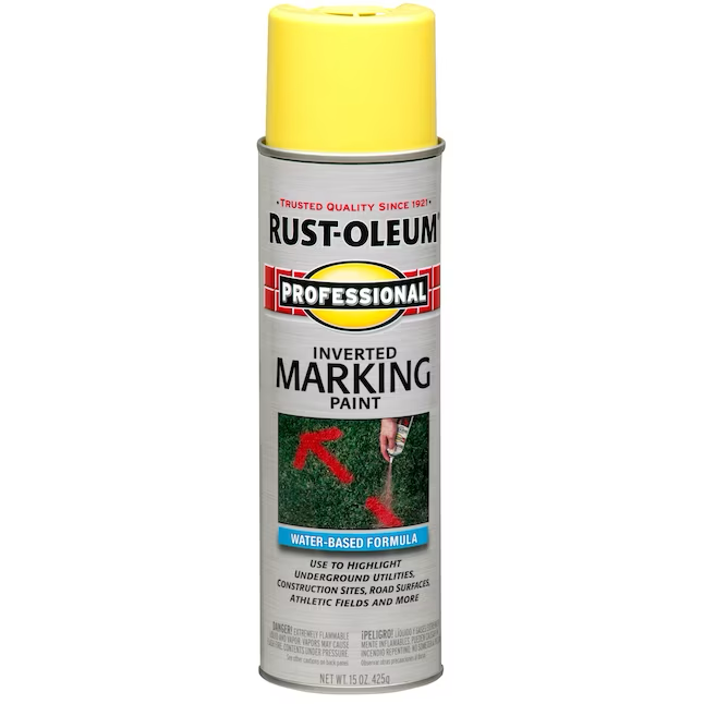Rust-Oleum Professional Inverted Marking Spray Paint creates easy-to-read markings in bright, vivid colors