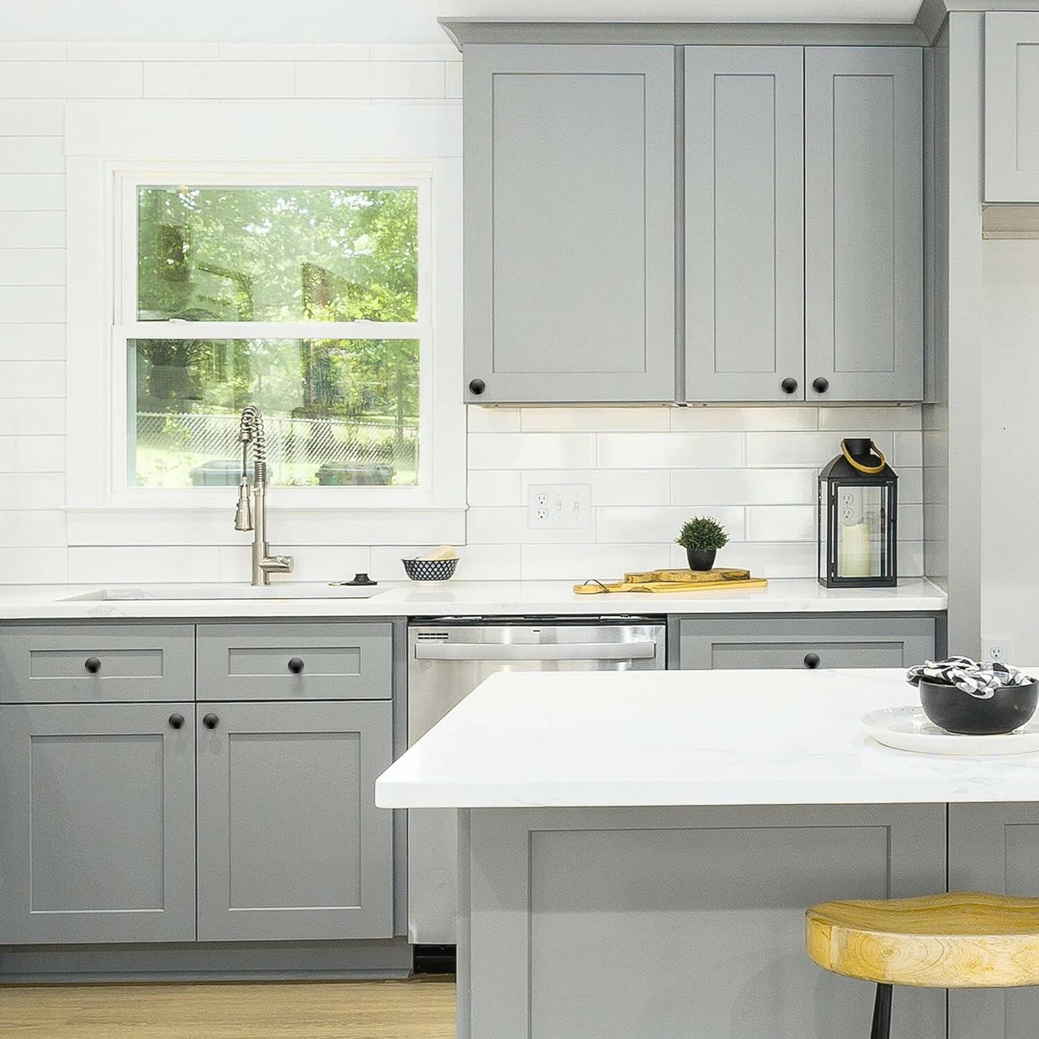 Upgrade your cabinets with SABER SELECT ‎1.16"L x 1.16"W Matte Black Round Cabinet Knobs. This 5-pack of high-quality knobs adds a sleek and modern touch to any kitchen or bathroom. Made with durability in mind, these knobs are both functional and stylish, offering an easy and affordable way to update your space.