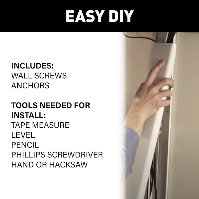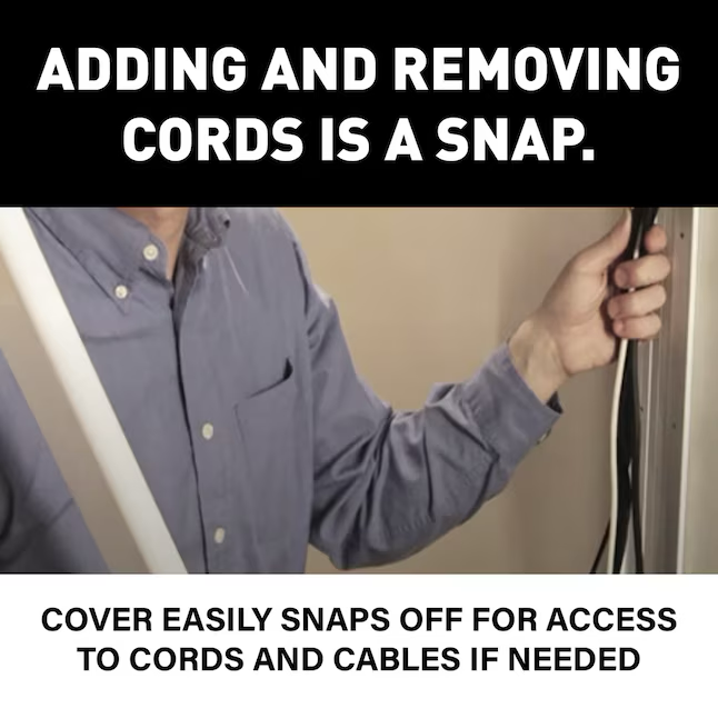 - Specifications Material PVC Style Flat Package Contents 48" cord cover Total Number of Pieces 2 Paintable Yes Use Location Wall Peel and Stick No Warranty 1-year limited Reversible No