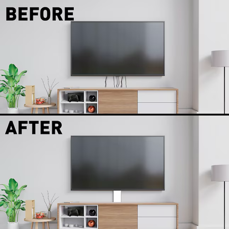 Hides and organizes TV cords and cables