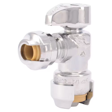 SharkBite 1/2 in. Push-to-Connect x 1/4 in. Push-to-Connect Chrome-Plated Brass Quarter-Turn Angle Stop Valve