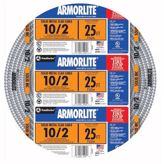 Southwire Armorlite 25-ft 10/2 Solid Aluminum Mc Cable