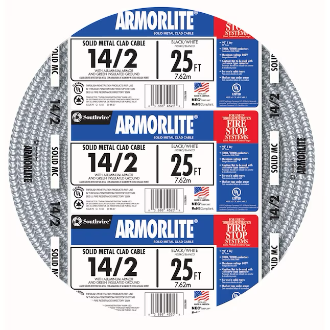 Southwire Armorlite 25-ft 14/2 Solid Aluminum Mc Cable