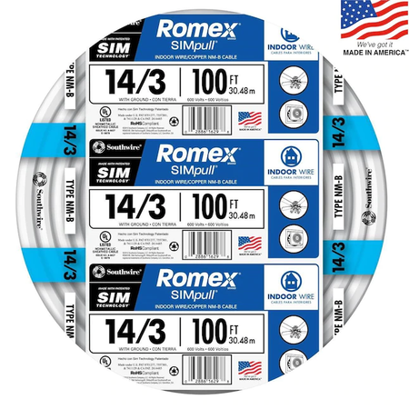 Southwire Romex SIMpull 100-ft 14 / 3 Solid Indoor Non-Metallic Wire