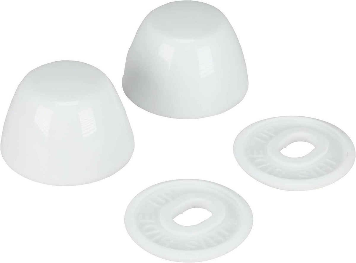 Toilet Bowl Caps will cover up unsightly, protruding hardware used to secure your toilet to the floor. It comes with 2, easy-to-install white caps with snap-on inserts. They have a universal fit that is designed to fit most toilets.