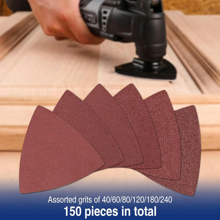 WORKPRO 150-piece Triangle Sanding Pads, 3-1/8 Inch Hook and Loop