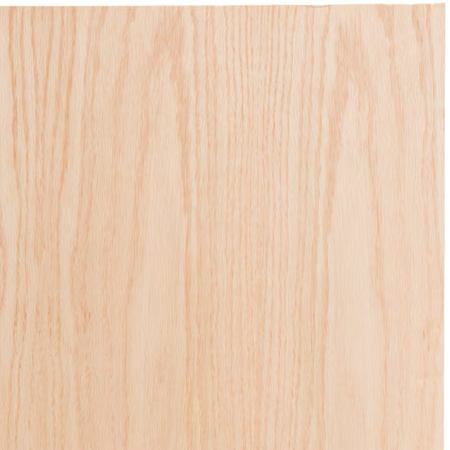Oak veneer on front face only; generic hardwood back face; smooth, sanded face and back veneers; square-cut corners, perpendicular to edges
