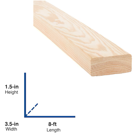 Common: 2-in x 4-in x 8-ft; actual: 1.5-in x 3.5-in x 8-ft