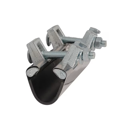 This Eastman Pipe Repair Clamp is specially designed for pipe repair applications. Its clever 2-bolt mechanism eliminates the possibility of loose parts and allows for an easy single-hand installation. The clamp is built with a stainless steel band and galvanized lugs that protect the clamp against rust and corrosion. The lugs create uniform pressure against the gasket to provide a positive seal that will not collapse on Schedule 40 PVC. The gasket is made of high-quality rubber that won’t deteriorate over time and that can withstand a temperature rating of -20-degrees F to +180-degrees F.