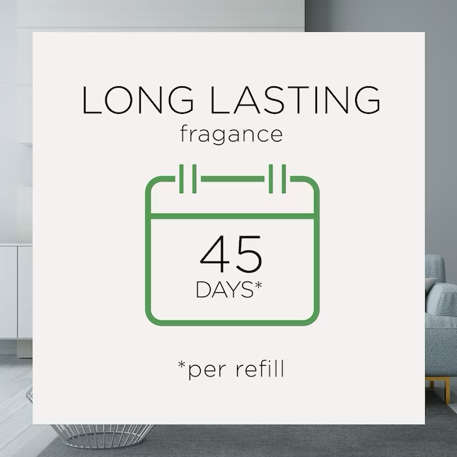 • Each refill provides up to 45 days fragrance based on low setting, no need to add water, each refill comes ready to use, easy to change out the refills