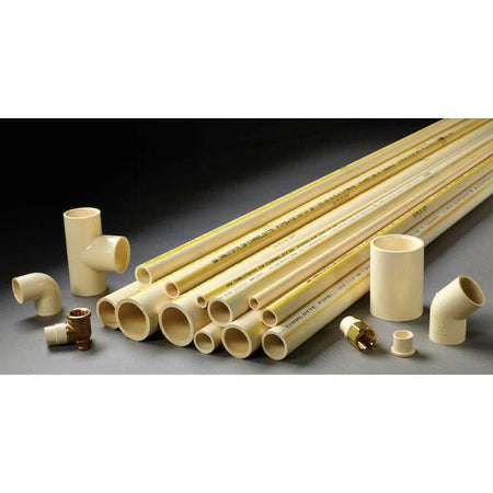 • Cream colored pipe and fittings used for hot and cold water distribution