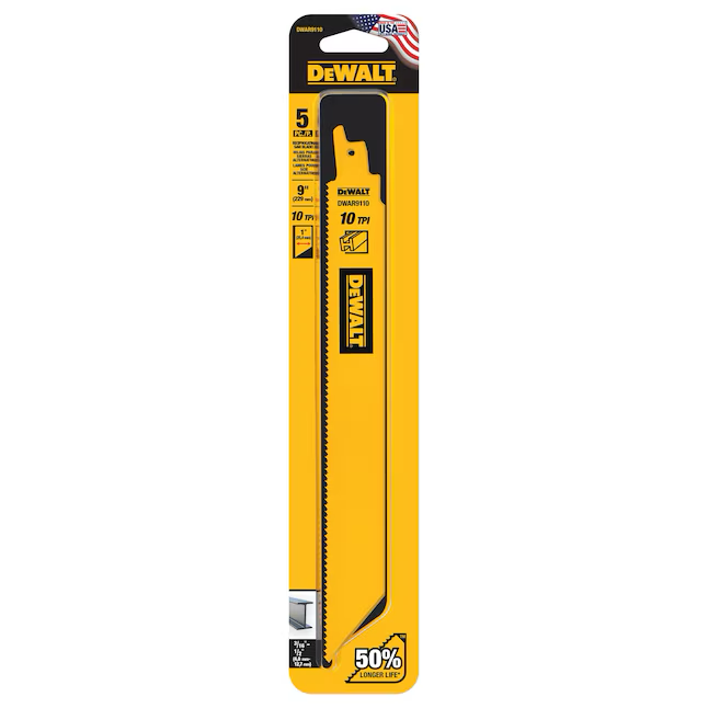 • Includes: (5) 9-in 10 TPI reciprocating saw blades