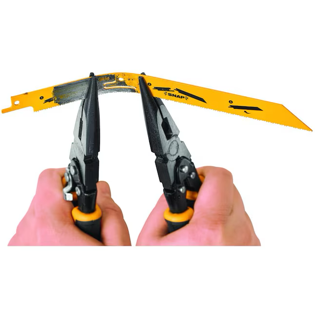 DEWALT BREAKAWAY reciprocating saw blades are designed for the contractor who is tired of throwing away blades halfway used. With the BREAKAWAY feature, the user is able to break away the used section of the blade and then reinsert the unused blade back into the saw. The 6-in DEWALT BREAKAWAY reciprocating saw blade breaks into a 4-in blade, which allows up to 2-in material to be cut. The 9-in DEWALT BREAKAWAY reciprocating saw blade breaks into a 6-in blade, which allows up to 2-in material to be cut. DEWALT BREAKAWAY reciprocating saw blades have been designed with a thick body for added durability. DEWALT BREAKAWAY reciprocating saw blades feature a 14/18 variable tooth pattern for optimized cuts in a variety of metal cutting applications.