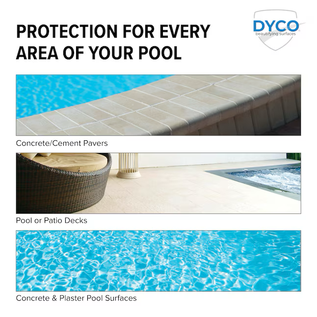 FINISH YOUR SPACE: Dyco Pool Paint is perfect for putting the finishing touch on your concrete pool, deck, or masonry surface.