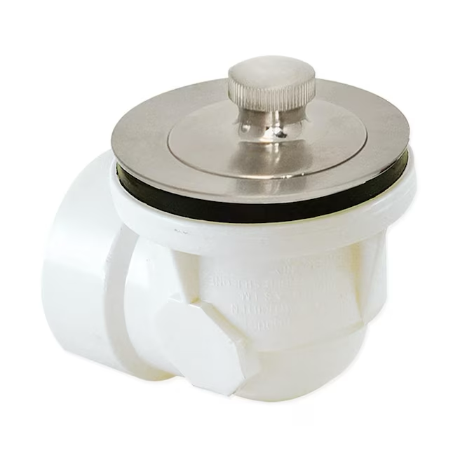 The PVC pipe measures 1-1/2 inch and comes with a lift-n-lock stopper