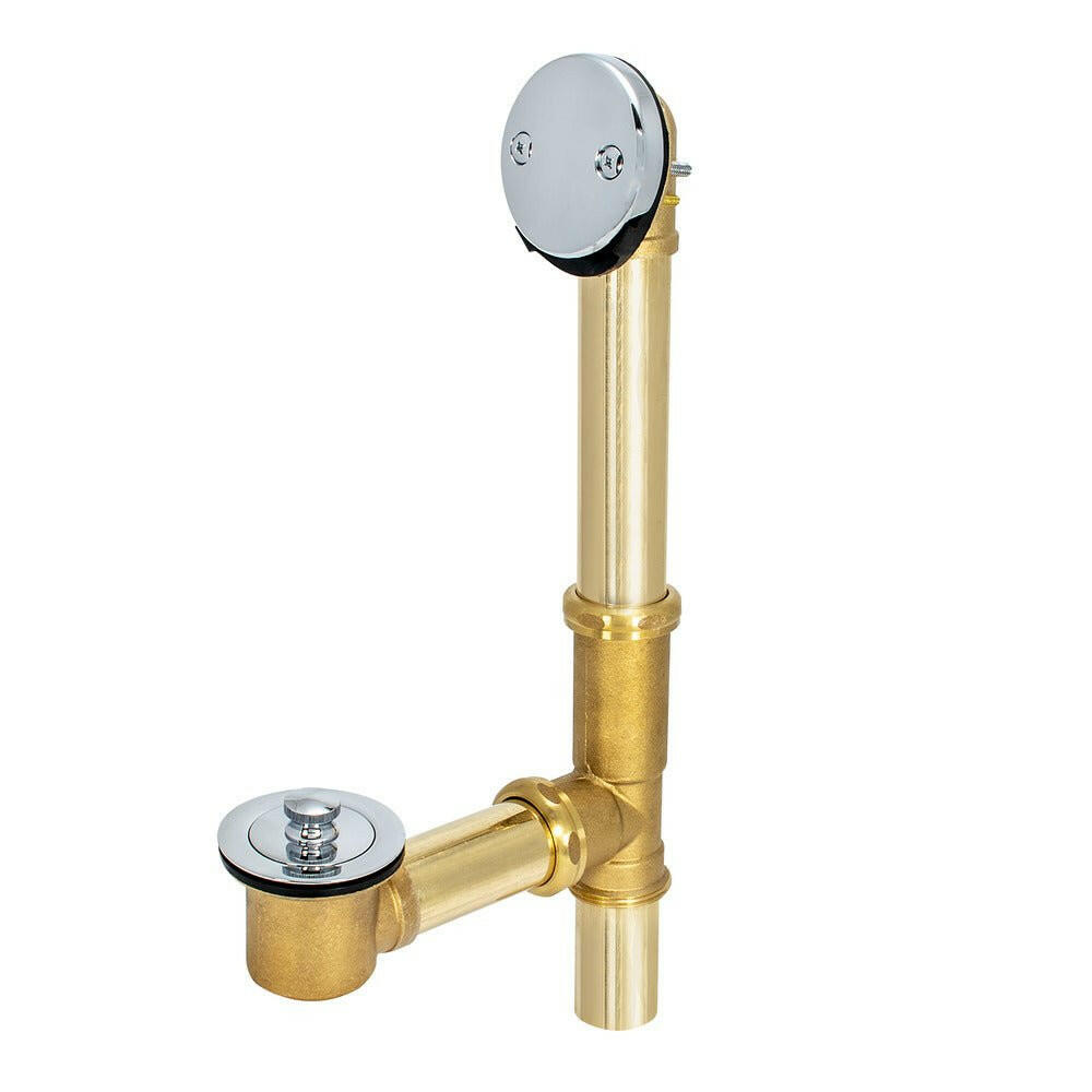 The Eastman Lift and Lock Two-Hole Bath Waste is designed to fit standard sized bathtubs. It is constructed of heavy-duty 20-gauge brass tubular for a strong and rust resistant connection. The tubing measures 1-1/2 inch and comes with a lift-n-lock stopper. A chrome-plated finish resists corrosion and provides a sleek and modern look. A two-hole overflow plate is also included.