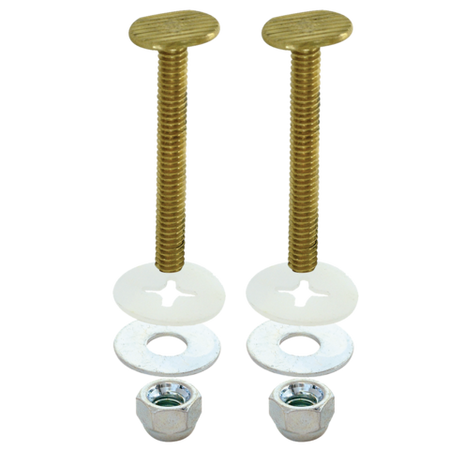 Toilet closet bolts are one of the final steps in your toilet installation. These bolts anchor the toilet to the floor once you have set everything it place. They are manufactured with solid brass for durability, washers and nuts included.