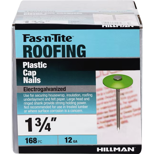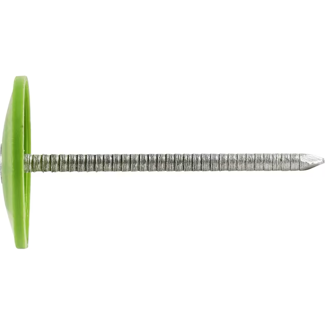 Manufactured for quick and easy installation, electro-galvanized plastic cap roofing nails are ideal for fastening roofing felt, house wrap, sheathing, underlayment, and more. The ringed shank and wide round head on this nail provide superior holding power for reliable installation. Its capped-head helps seal out moisture that can penetrate sidewall, thereby reducing blow-offs and lateral slippage. The electro-galvanized finish on this nail provides superior rust and corrosion protection. Install with confidence as its sharp point easily pierces felt without ripping and the flexible plastic head conforms to surfaces. Because of its wide head and tight hold, fewer nails are needed to get the job done. Use this fastener with a plastic cap roofing nailer.