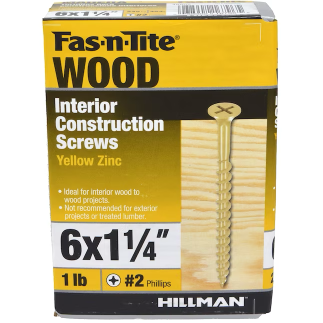 Interior construction wood screws are ideal for all your DIY home projects where secure wood-to-wood connections must be made. Wood screws are designed for wood applications, specifically for joining two pieces of wood. The smooth shank allows the screw to pull two pieces of wood together to form a tight joint while preventing the wood from pulling or splitting. The standard point on these screws requires a pilot hole for installation. Parts feature a #6 thickness and 1-1/4-in length. Fas-n-Tite offers reliable, functional products that get the job done right.