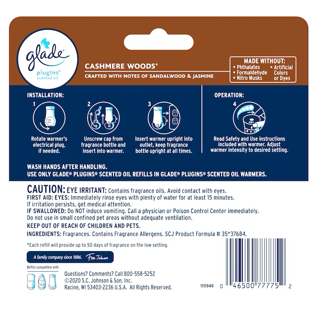Glade Scented Oil 0.67-fl oz Cashmere Woods Refill Air Freshener (5-Pack)