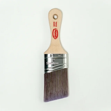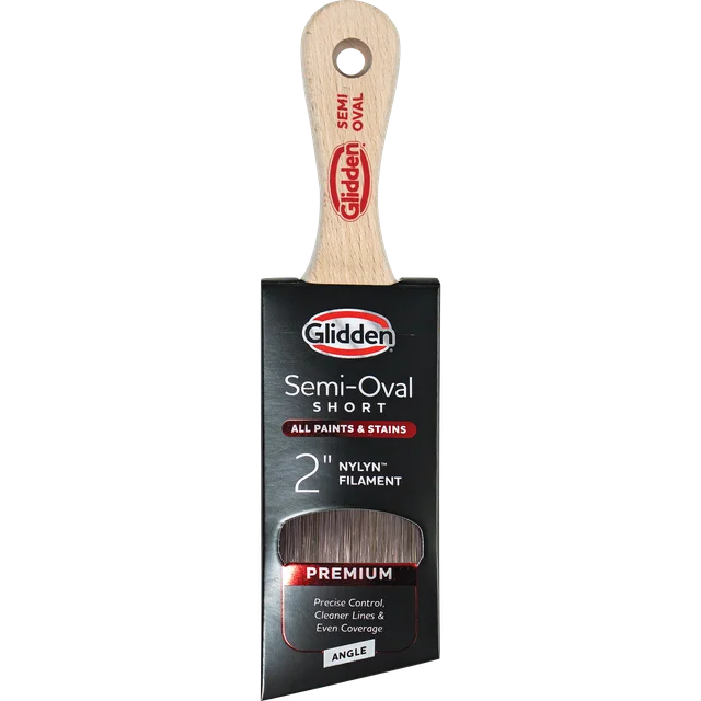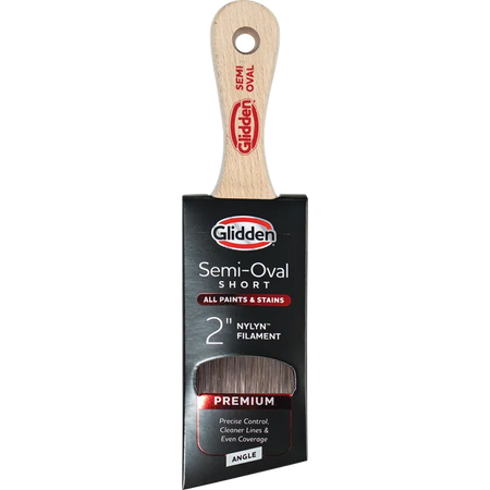 Glidden 2" Semi-Oval Shortcut Angle Paint Brush is the perfect tool to complete your painting project and suitable for use with all types of paints and stains. This mid-size brush is often the most popular size due to their versatility. The angle sash is effective for window frames, trim and cutting in edges of walls, ceilings and baseboards. Pair with Glidden brand paints for a perfect paint project.