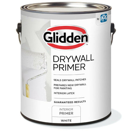 Glidden Interior Drywall Primer, White, 1 Gallon, Flat is a latex drywall primer that seals drywall patches and tape joints by penetrating the drywall and sealing the surface. This primer prepares new drywall for painting.