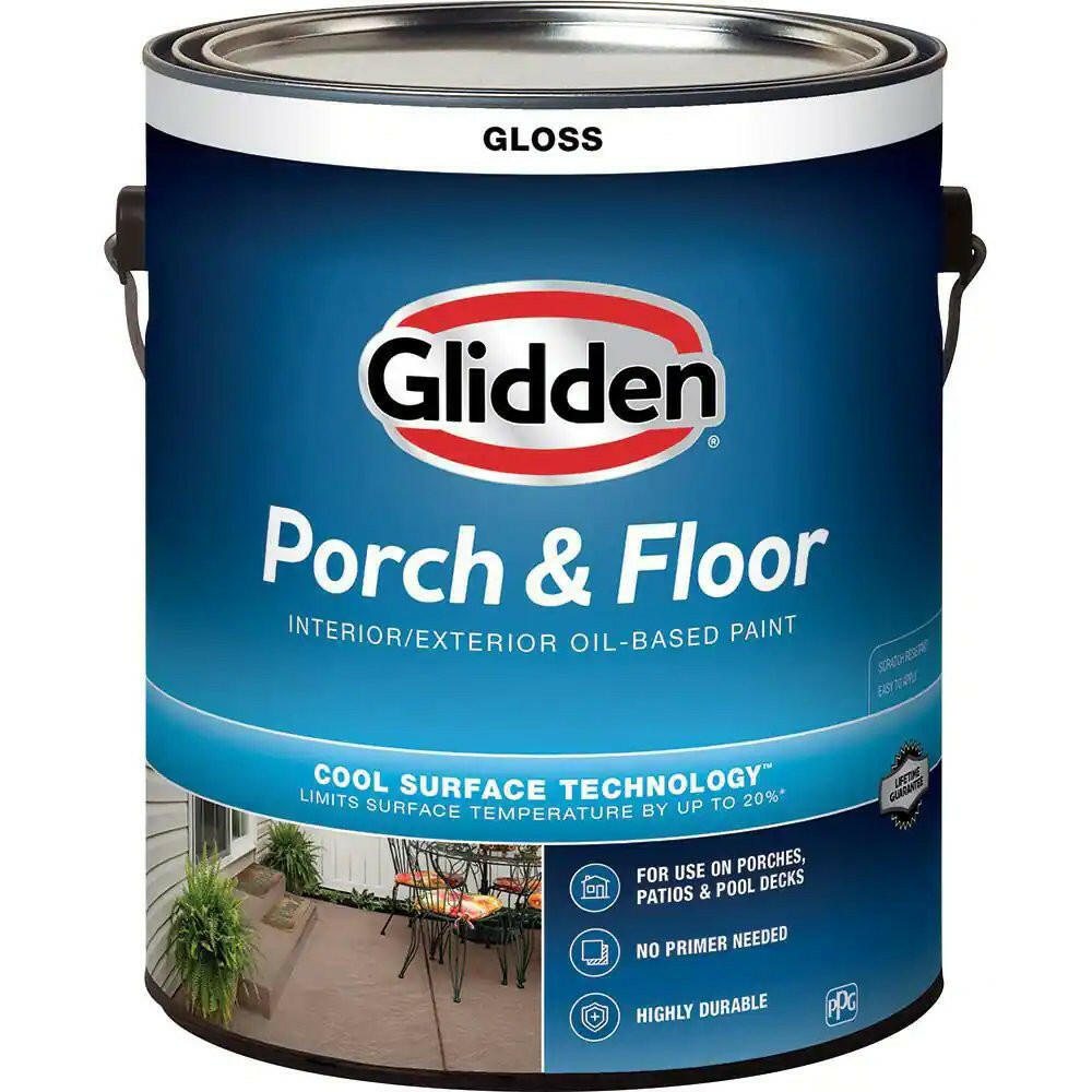 Glidden Porch & Floor, interior/exterior oil based paint helps you create a beautiful, lasting look on porches, patios and pool decks. Cool Surface Technology limits the surface temperature by up to 20%* when compared to products of a similar color. It does not require a primer for easy application, and is highly durable and scratch resistant.*Limits hot weather surface temperature spikes of pedestrian and vehicular horizontal concrete surfaces when compared to products of similar color without Cool-Surface Technology. Temperature containment may differ due to color, ambient temperature, direct sunlight and time of day.