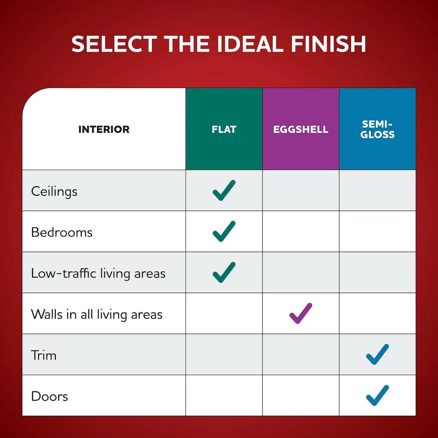 Glidden® Spred Interior Paint, Farm Fresh, Eggshell, 1 Gallon is a low-VOC, low-odor liquid paint and primer* all-in-one that provides very good hide, coverage, and washability. Recommended for use on properly prepared concrete/masonry, metal, drywall, plaster, and wood. Select the best sheen for your project. Flat is an ideal finish for ceilings, bedrooms and low traffic living areas. Eggshell is an ideal finish for walls in all living areas including kitchen, bathroom and living room. Semi-gloss is an ideal finish for trim and interior doors.