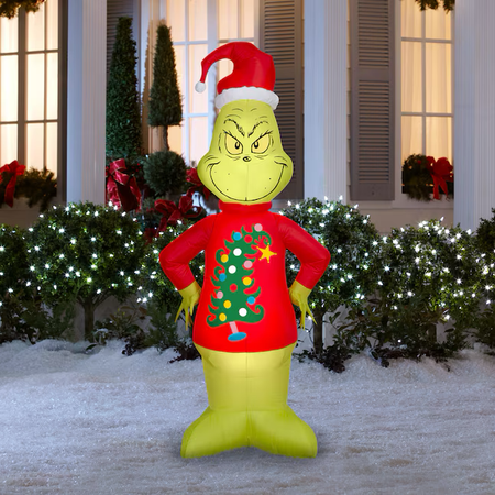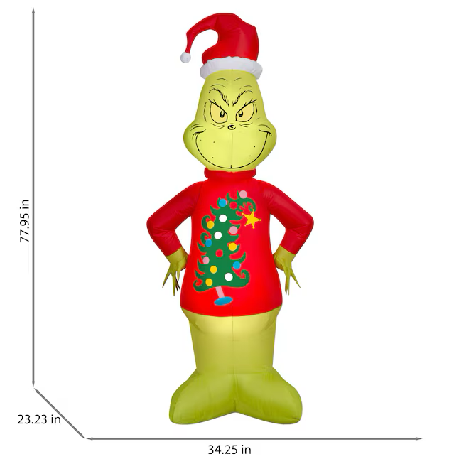 6.6-FT H x 3-FT W x 2-FT D indoor/outdoor Airblown® Inflatable life-size Grinch in fun Christmas sweater