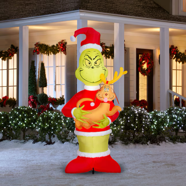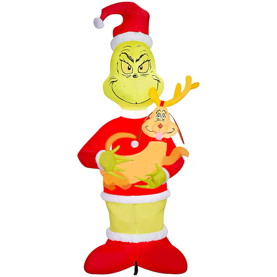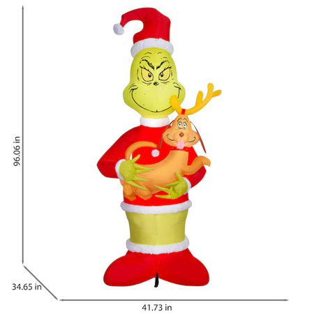 8-FT H x 3.6-FT W x 3-FT D indoor/outdoor Airblown® Inflatable giant Grinch holding Max