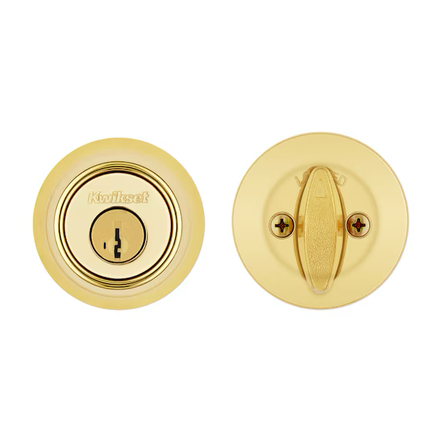 As the industry leader, Kwikset has provided trusted security for over 70 years and has become synonymous with security, peace of mind, style and innovation. The largest-selling deadbolt in America, the 600 series provides tough, effective protection at an affordable price. This single cylinder deadbolt is operated by a key on the outside or a thumb turn on the inside. The Polished Brass finish adds to the traditional look and feel of the product and makes a classic statement.