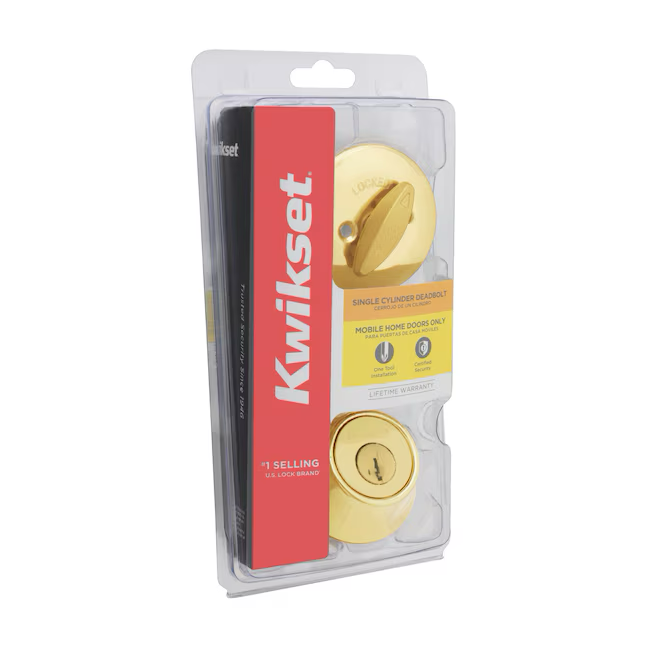 Kwikset Security 660 Mobile Home Deadbolt Series Polished Brass Single Cylinder Deadbolt with SmartKey