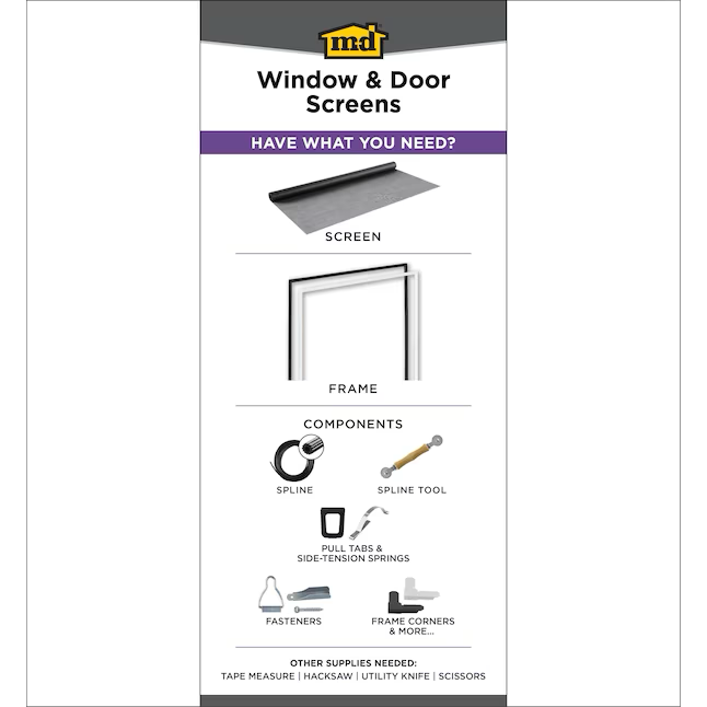 The MD standard fiberglass screen is made of flexible fiberglass mesh for easy install. The screen is wrinkle-free, resistant to denting and unraveling and is perfect for DIY projects.