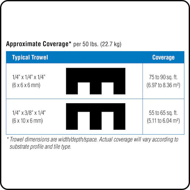 When mixed with water, suitable for ceramic tile, quarry, pavers and saltillo tile over cementitious surfaces