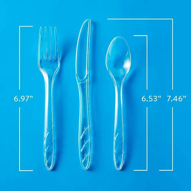 Each piece in the Member's Mark Clear Cutlery Combo Pack is made of thick, heavy-duty plastic, so it doesn't break easily. You can even rinse it and use it again to reduce waste.