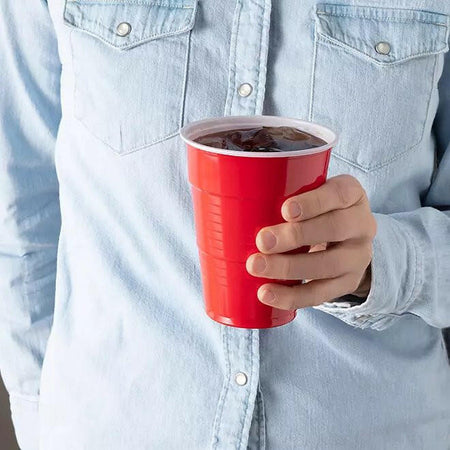 These 18-oz. red plastic cups hold two ounces more than your typical red party cup, making them the perfect size for all kinds of drinks. Whether you're serving beer, soda, mixed drinks or water, these cups will hold just the right amount.