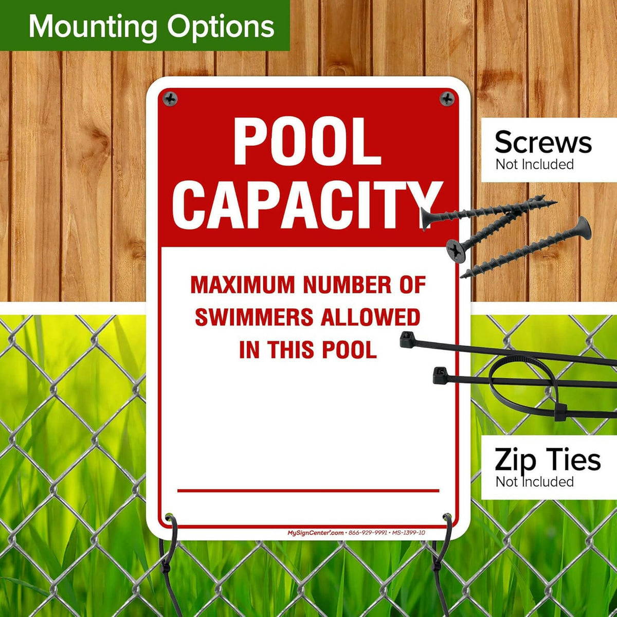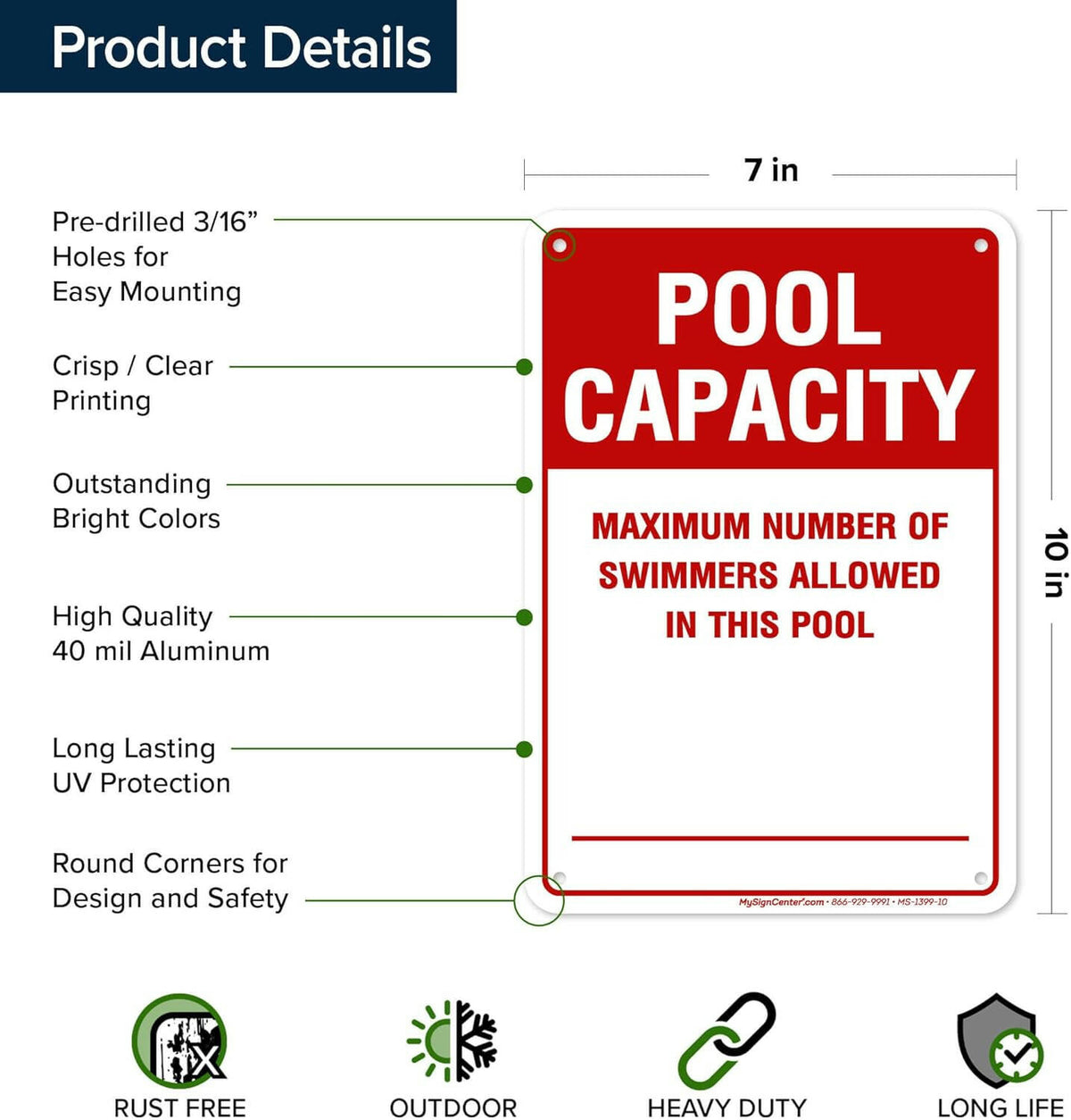 Pool Capacity Maximum Number of Swimmers Allowed In This Pool Sign 7 in. x 10 in.