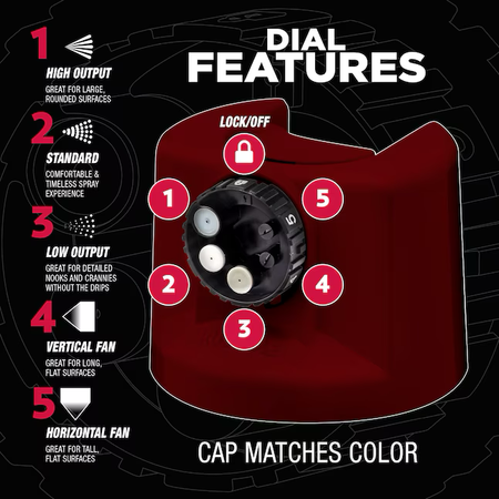 Custom Spray 5-in-1 dial gives a choice of 5 spray paint patterns