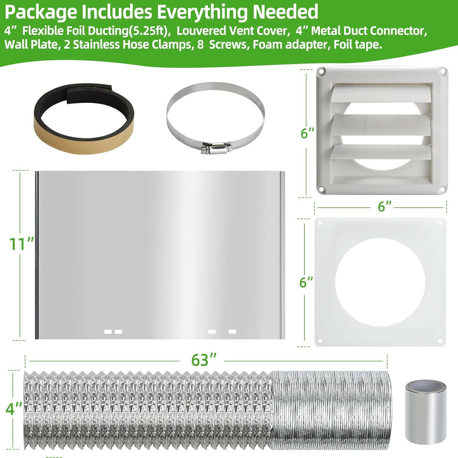 - 4” flexible dryer vent hose (Max 63”/5.25ft)