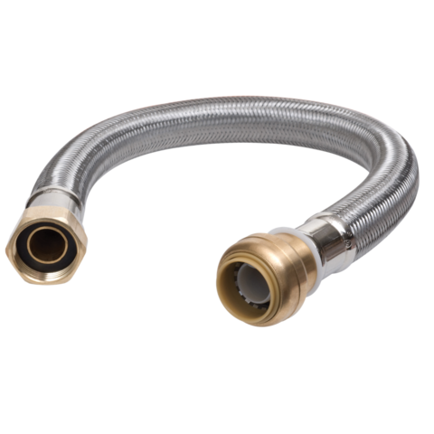 The SharkBite® 18-inch braided stainless steel water heater connectors allow you to work in tight spaces and easily connect water heaters with existing pipes that don't line up. Approved for use on electric or gas water heaters with a flue vent. Innovative design reduces the need for extra joints or fittings allowing for faster install time. Can be used as an alternative to hard piping. Compatible with PEX, copper, CPVC and PE-RT pipe. No special tools, crimping, glue or soldering is needed. Can be installed in wet lines. Can be rotated for easier and faster installation. Ideal for working in tight spaces.