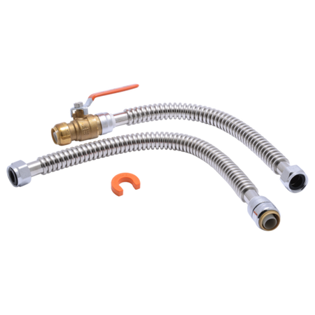 • Kit Includes: (1) 3/4 in. FIP x 3/4 in. Sharkbite x 18 in., (1) 3/4 in. FIP x 3/4 in. Sharkbite Ball Valve x 18 in., and (1) 3/4 in. Disconnect Clip